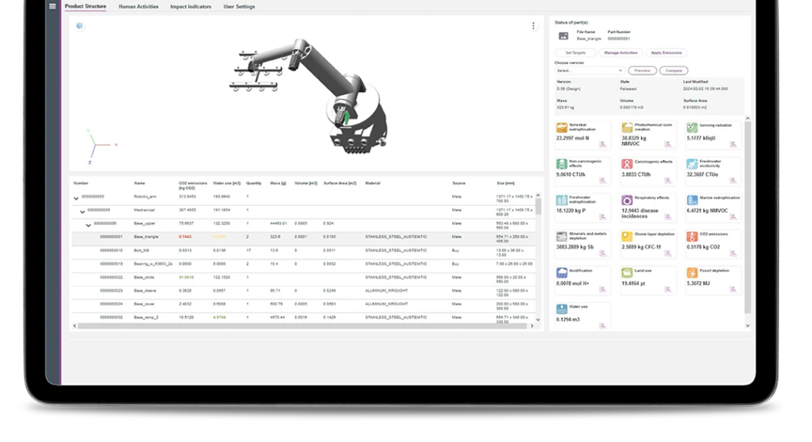 Eco PLM umożliwia producentom wgląd w kluczowe wskaźniki środowiskowe w czasie rzeczywistym, wspierając tworzenie bardziej ekologicznych produktów już na etapie koncepcji. Narzędzie automatyzuje gromadzenie danych o emisjach i materiałach, ułatwia analizę cyklu życia (LCA) i zapewnia pełną transparentność procesów. Integracja z systemami PLM: ecoPLM oferuje płynną łączność z zewnętrznymi systemami PLM.